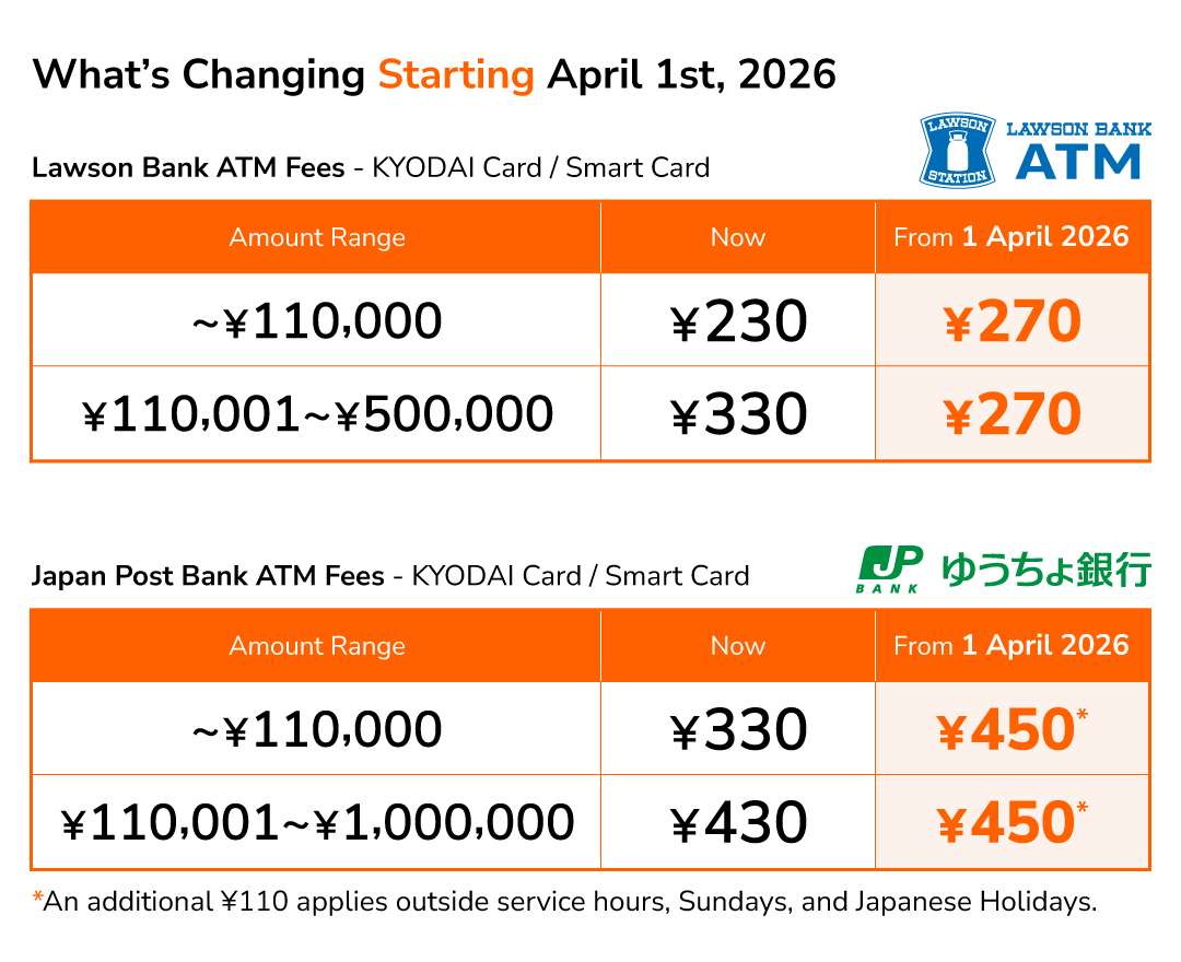 We would like to inform you that the ATM transaction fee will be updated effective April 1, 2026.
