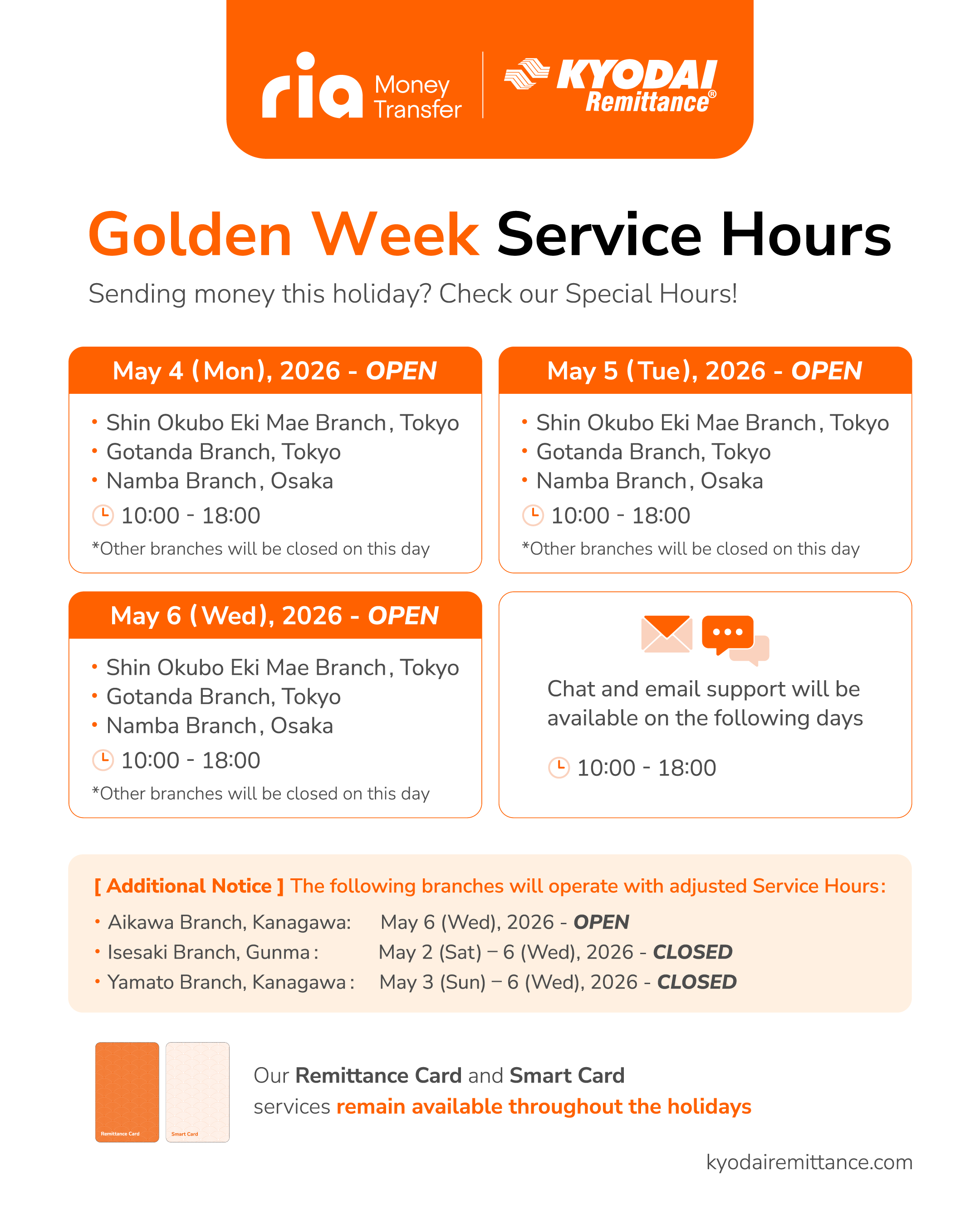 Golden Week – Special Business Hours
