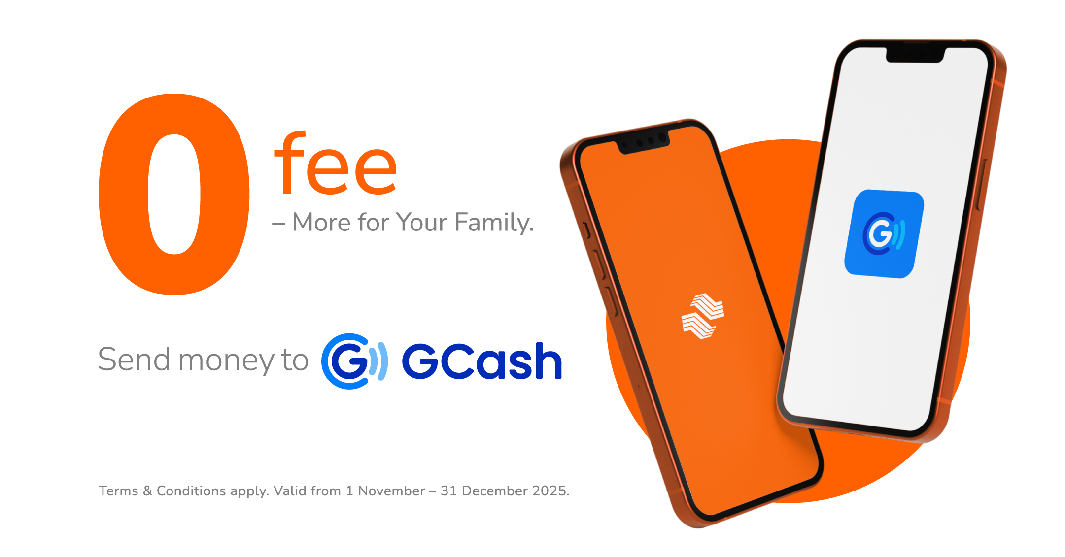 The zero-fee offer applies only to transactions sent to GCash. Remittances sent to other channels (bank account, cash pick-up, or other e-wallets) are not eligible.