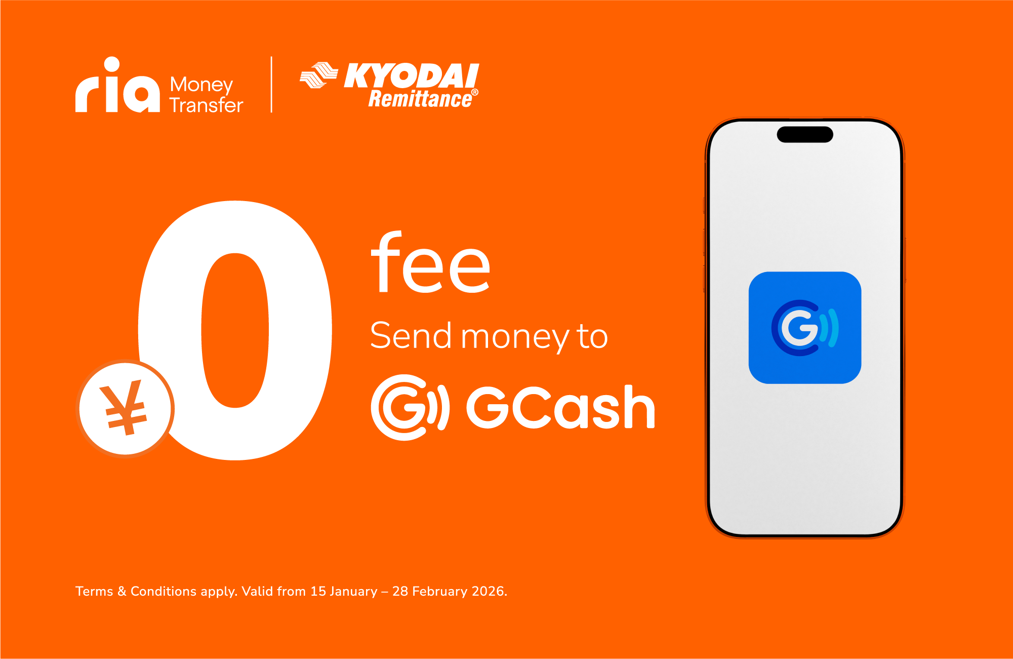 During the Campaign, Ria Kyodai Japan will waive all remittance fees for GCash transactions during the campaign period.