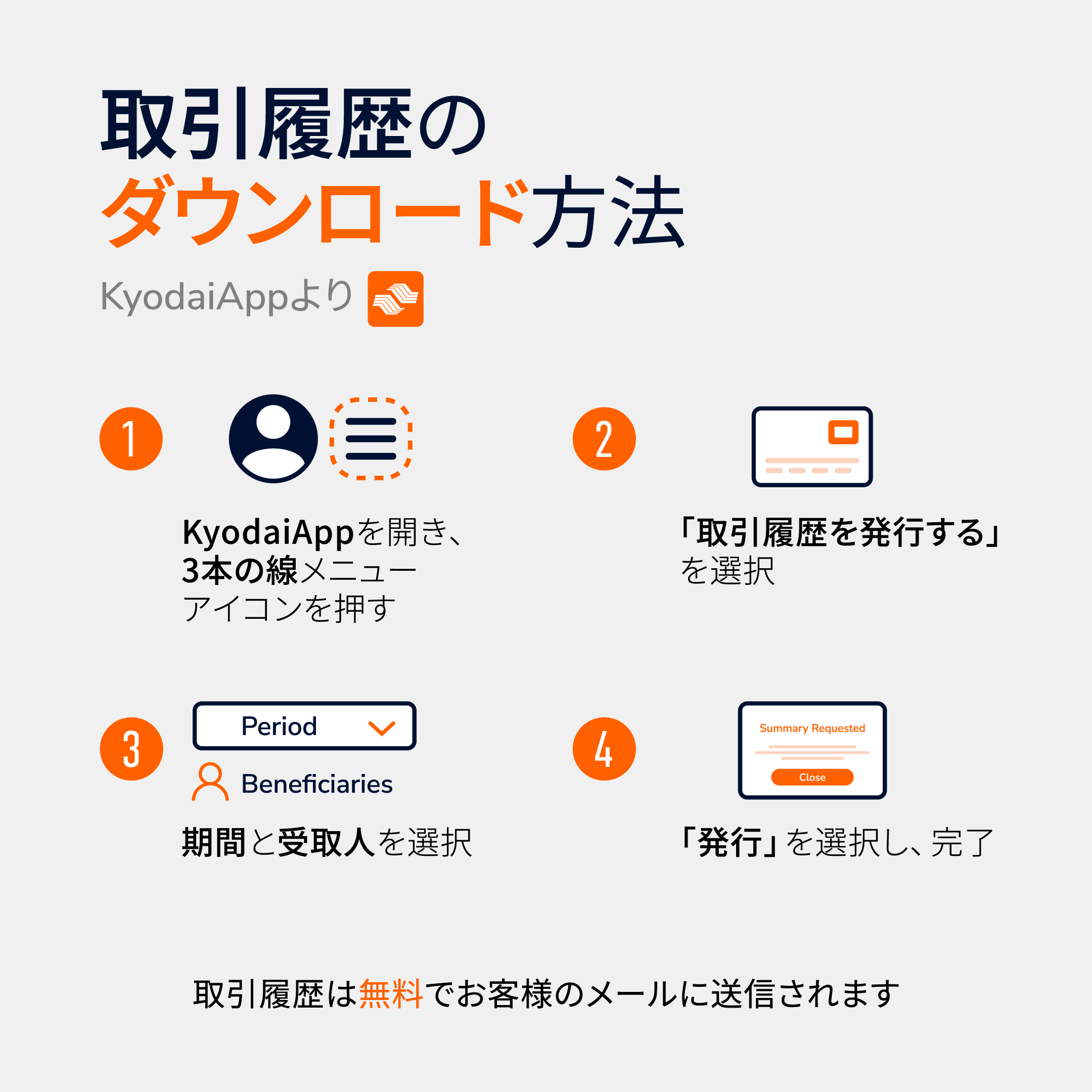 * キョウダイ支店にご来店いただき、キョウダイアプリの「直近のご依頼」をスタッフにお見せいただくことで私どもで印刷、お渡しすることも可能です。