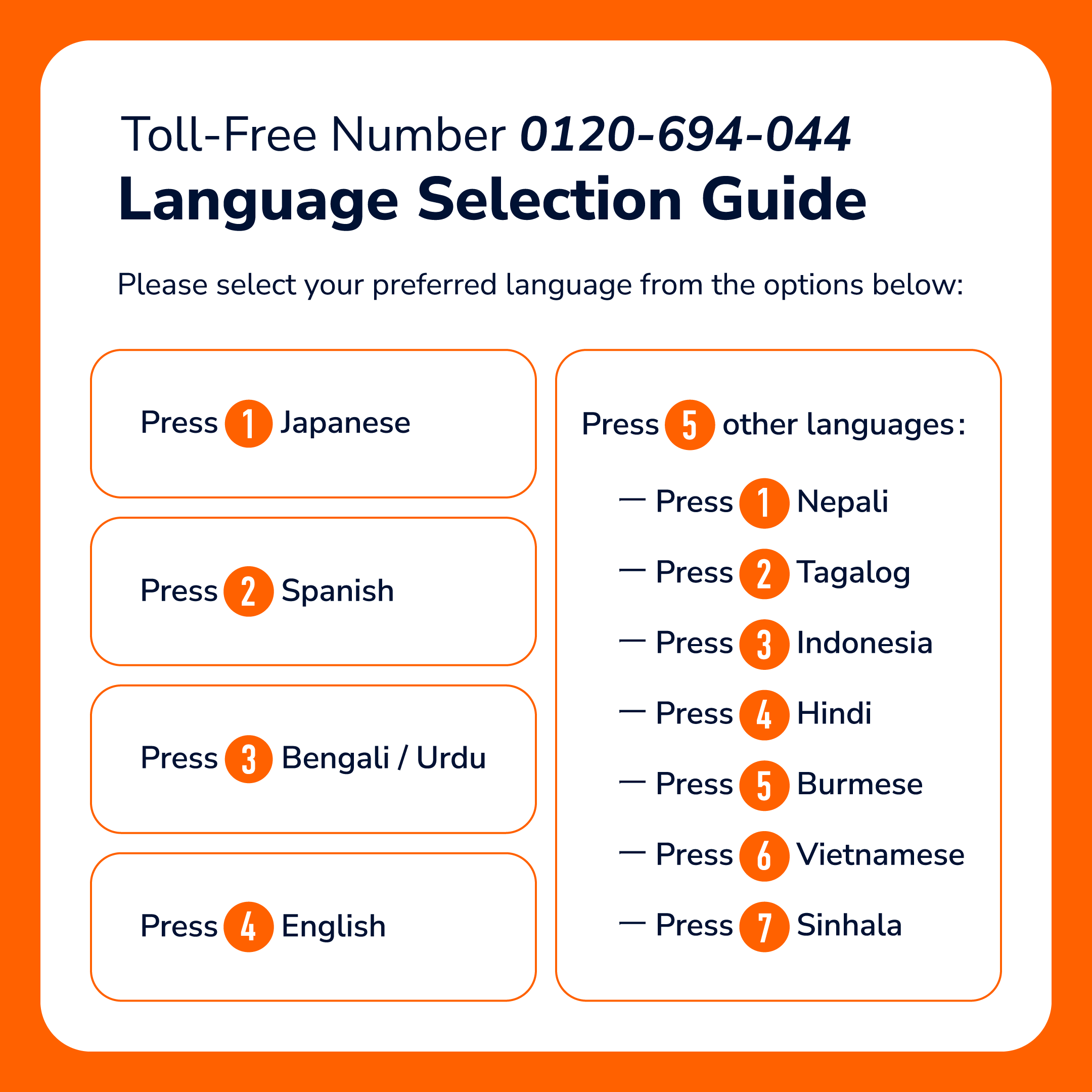 🔹 New toll-free number: 0120-694-044